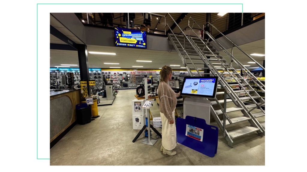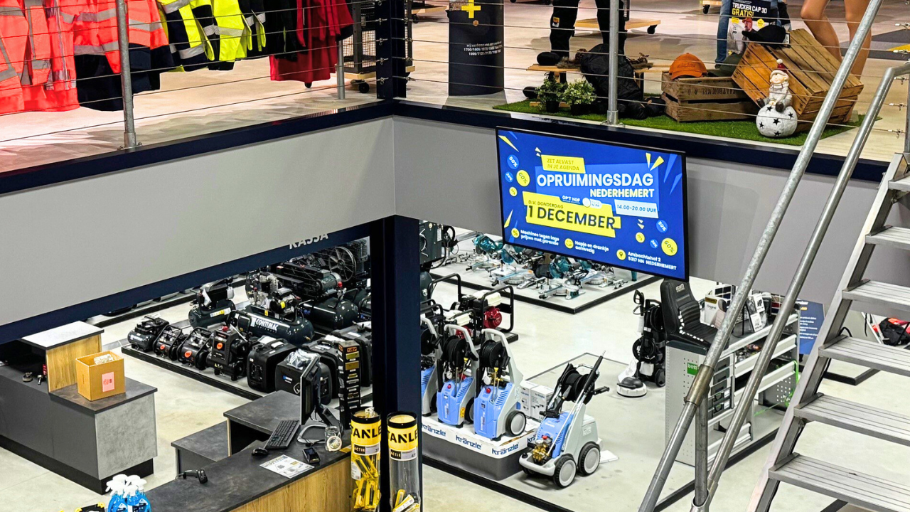 Op ’t Hof, een technische groothandel met 5 vestigingen, merkte dat klanten graag zelf informatie willen ontdekken, maar ook persoonlijk advies willen wanneer dat nodig is. Ze lopen de winkel binnen, willen iets bekijken of kopen, en zijn tussendoor nieuwsgierig naar het nieuwe assortiment. Om deze balans te behouden en klanten op hun eigen tempo te bedienen, ging de winkel op zoek naar een oplossing die beide mogelijk maakt: narrowcasting.