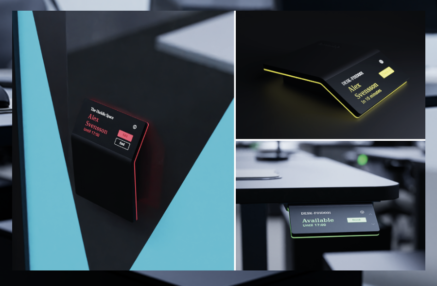 Monteer je Humly Booking Device op alles waarvan je wilt dat mensen kunnen boeken; bureaus, vergaderzalen, focus kamers, telefooncellen, flexibele werkplekmodules, co-working spaces, sociale ruimtes, auto’s en parkeerplaatsen en alles wat je maar kunt bedenken!